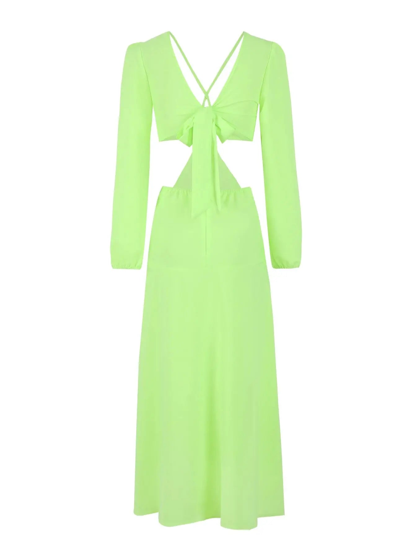 New Women's Sexy Long Sleeve Dress V Neck Solid Long Dress Halter Cut Out Exposed Waist High Slit Suspender Vacation