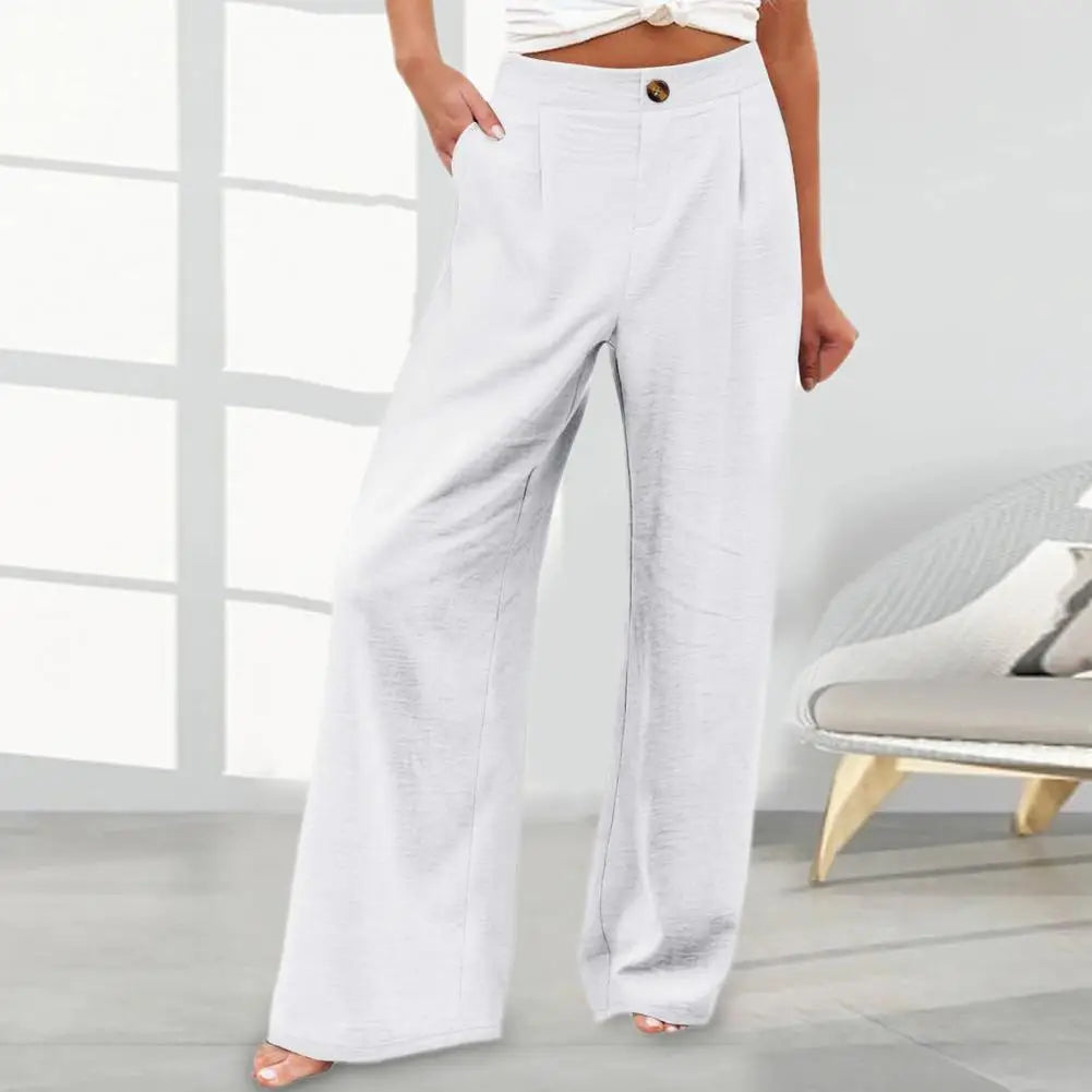 Women's High-Waist Wide Leg Pants with Pockets - Casual Streetwear Fashion