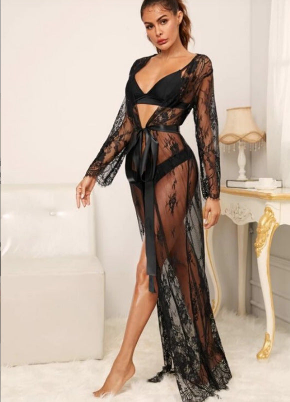 Get Cozy and Sexy with our Lace Robe Dress Sleepwear