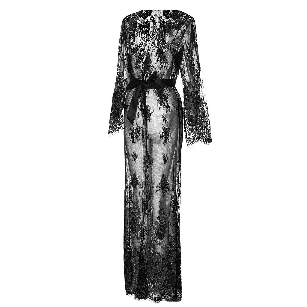 Lounge in style with our Women's Long Sleeve Lace Robe Dress. Made with high-quality materials, this robe features a rather sexy perspective design and comes with a satin silk belt for added comfort. Perfect for lounging at home or as a gift for that special someone. Order now and get ready to cozy up in style!