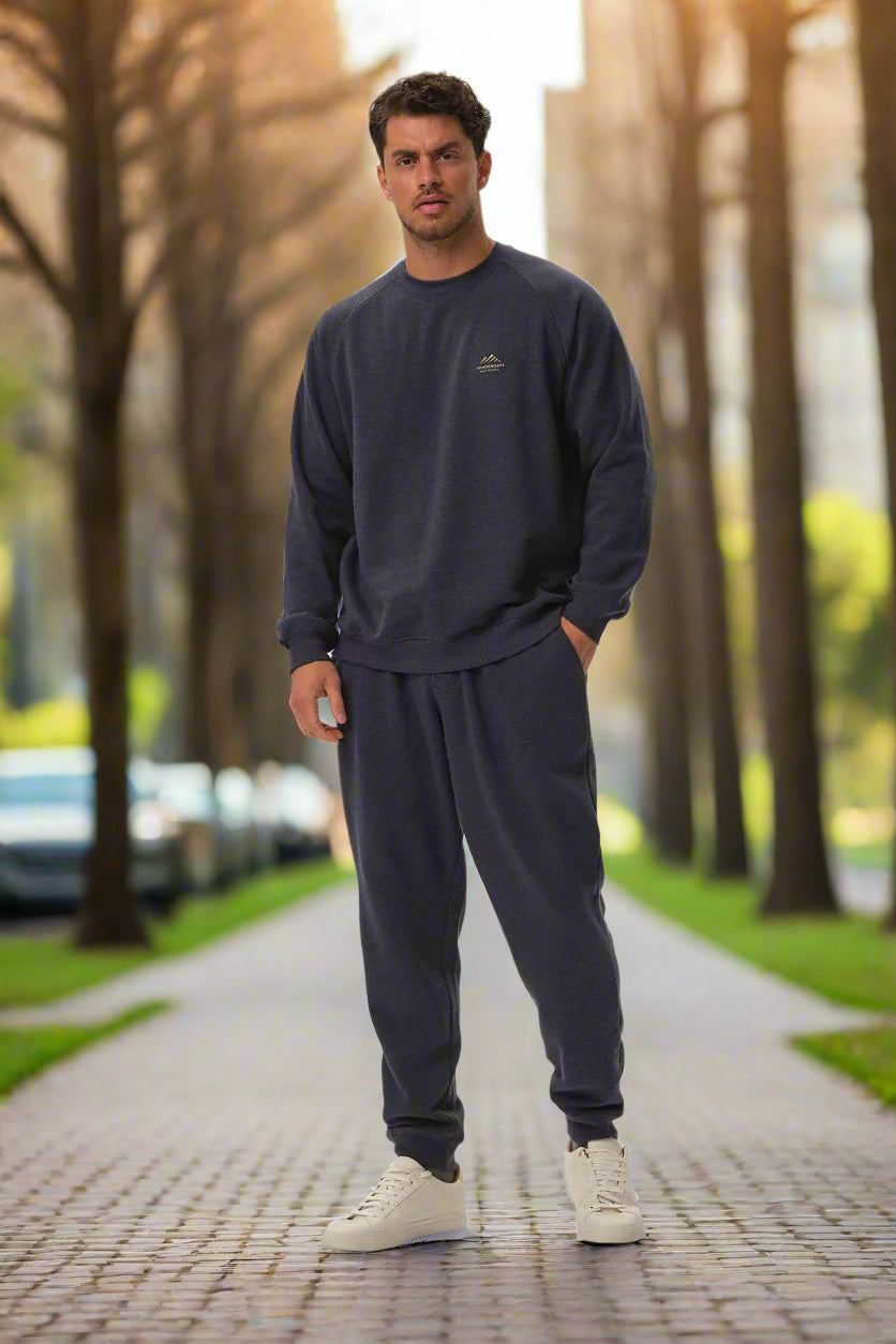 Looking for a soft and comfortable tracksuit that is perfect for everyday wear? The Hulk home apparel is a must have, where we combined a loose hoodless sweatshirt and long pants. This navy blue knit sweatshirt set provides freedom of movement while facilitating a snug fit, all thanks to ribbed ankles and wrists and a drawstring waist.