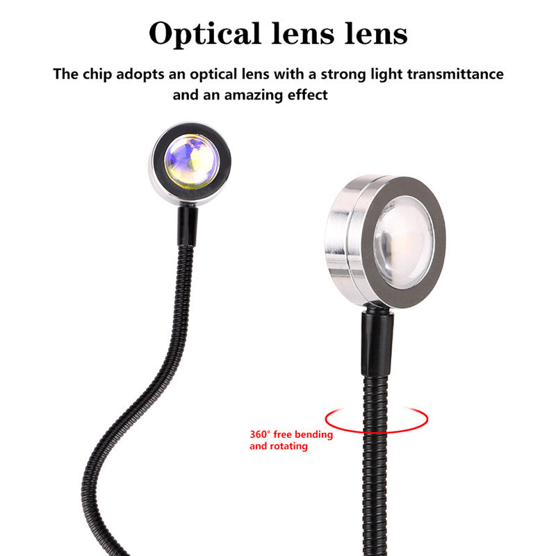 Transform your home with the Sunset Lamp USB Rainbow Projector Night Light! This amazing lamp lets you create stunning and colorful effects in any room, with just a touch of a button. Whether you want to relax with a soothing glow or spice up your party with a vibrant display, this lamp has you covered.