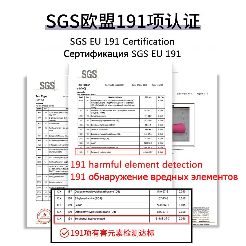 EU SGS 191 Certified: Rest easy knowing that our yoga mat has passed the rigorous EU SGS 191 Certification, meeting the highest standards of safety and quality.
