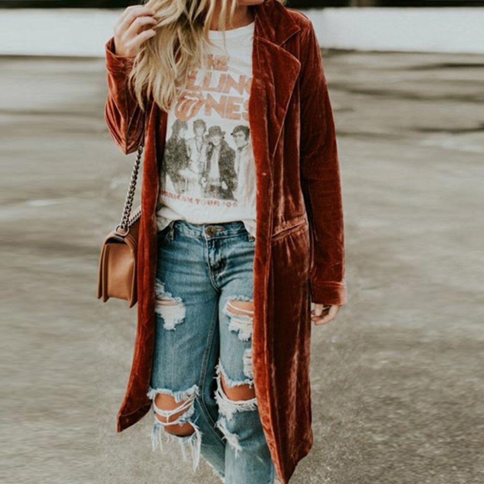 Specifications:Type: CoatSize Type: RegularGender: WomenMaterial: VelvetStyle: ChicSleeve Length: Long SleeveCollar Type: Lapel CollarGarment Care: Hand WashFeatures: Solid Color, with Pockets, Long Coat, Warm