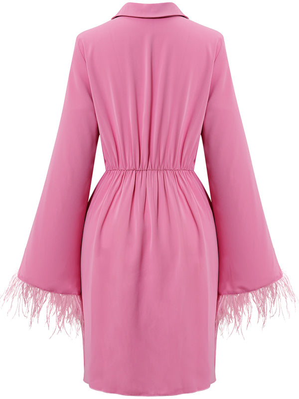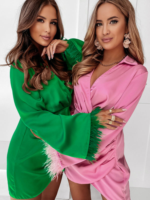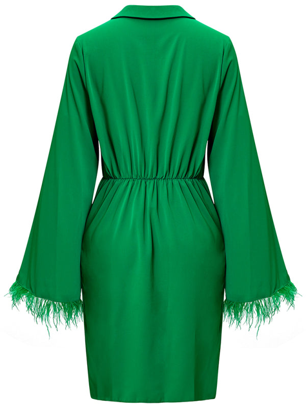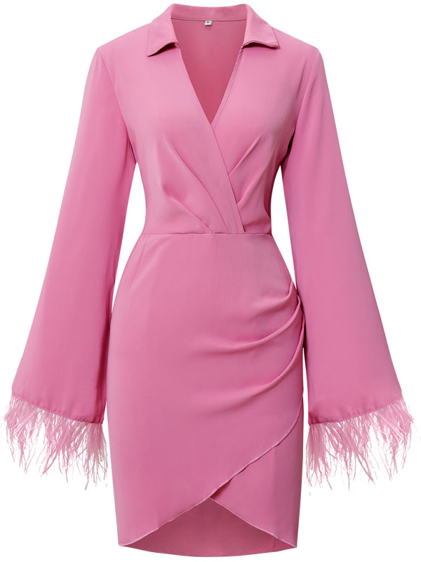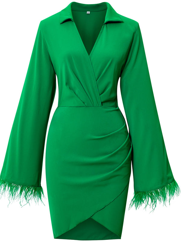 Women's fashion wool cotton cuffs Hip Wrap Dress